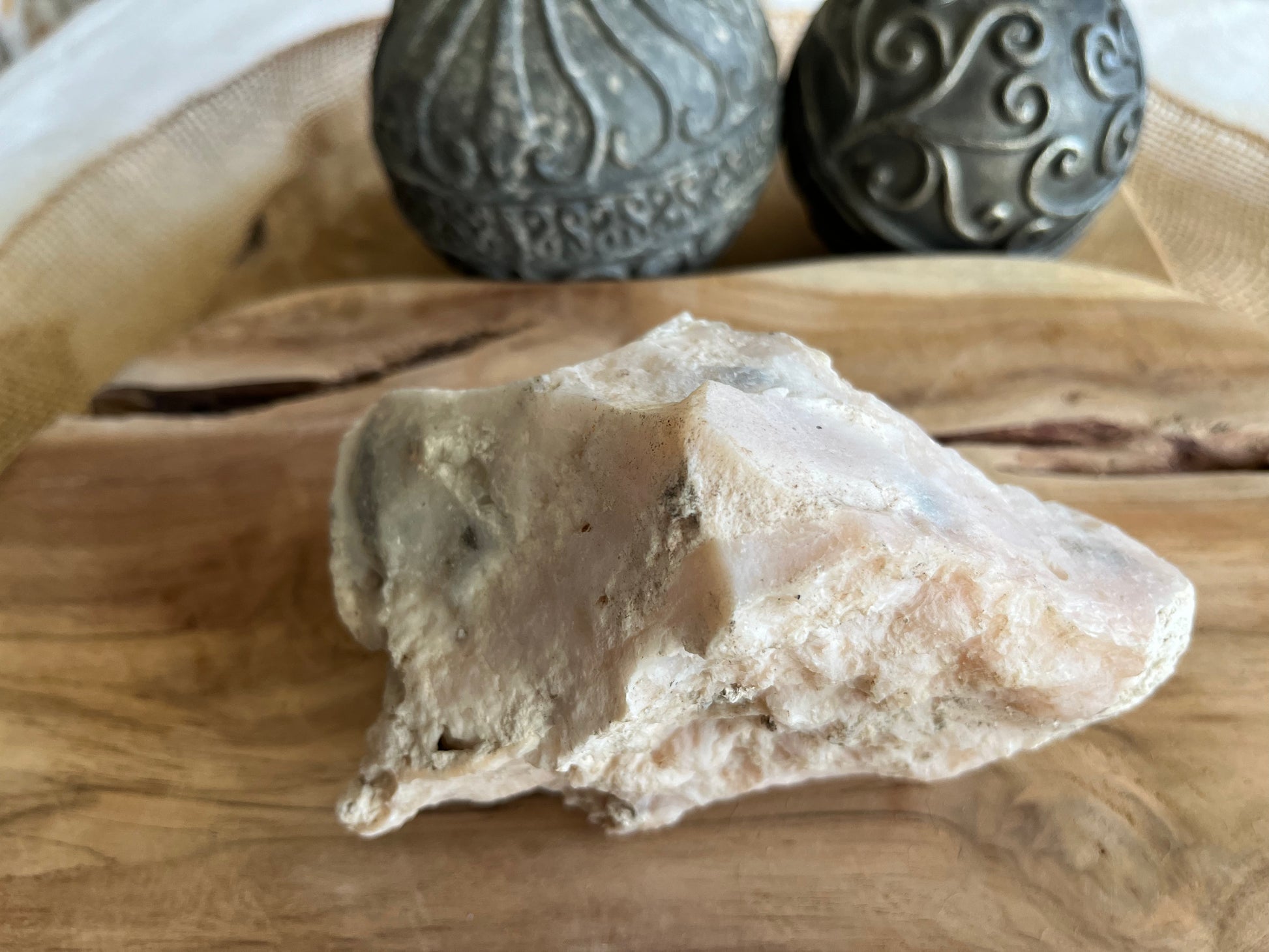 - Matériaux : Opale rose brute, aux nuances subtiles de rose pâle qui rendent chaque pierre unique. Sa couleur apporte une énergie douce mais puissante.