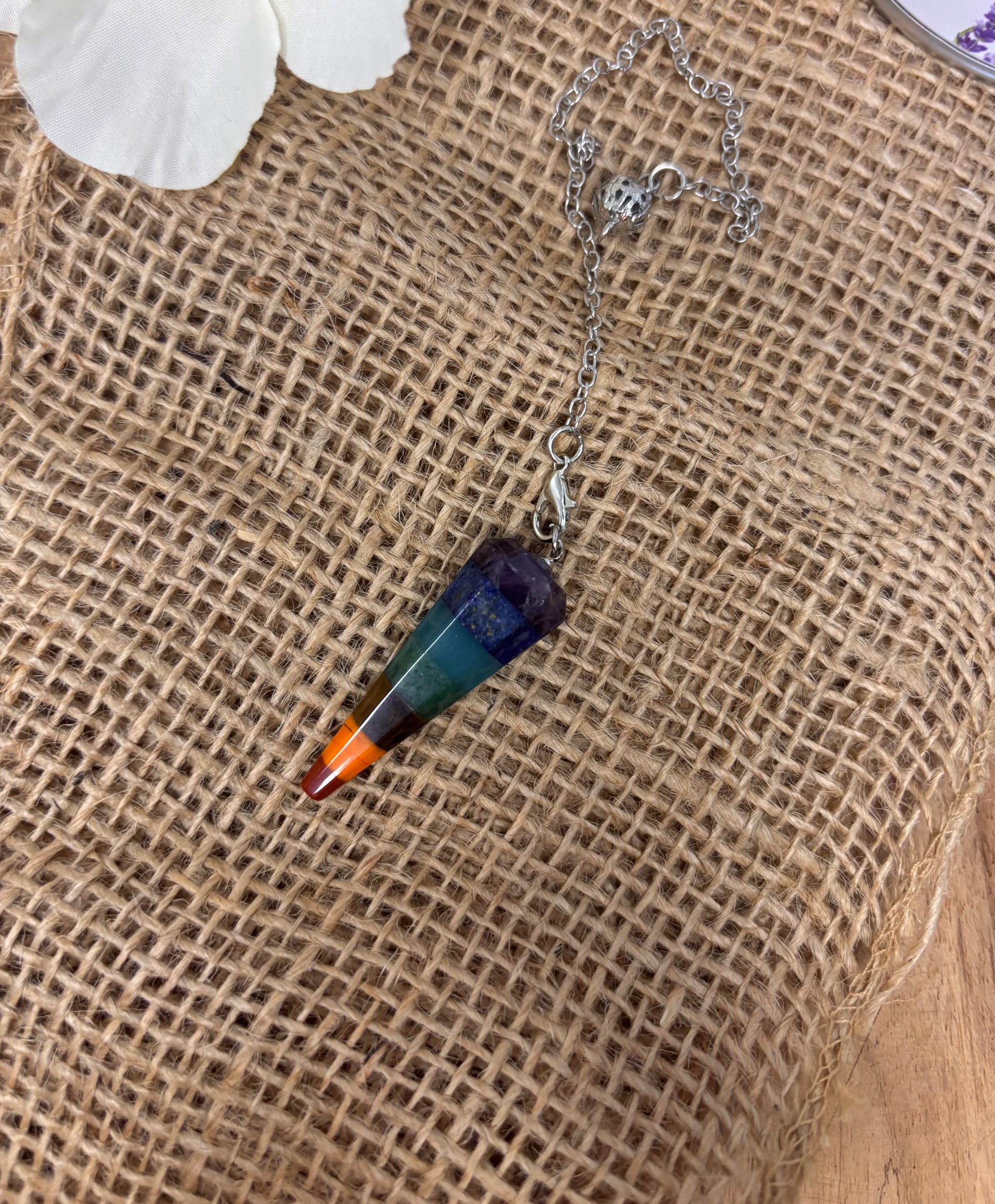 Ce pendule aux couleurs des 7 chakras est l'outil idéal pour vos séances de radiesthésie ou pour toute pratique énergétique. Chaque couleur correspond à un des chakras principaux.